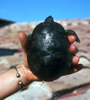 In summary, Emys orbicularis are a highly attractive and interesting turtle, which appears to possess quite a high degree of intelligence. It is certainly very adept at exploiting any opportunity to escape, so good security is important. They are particularly skilful at climbing vertical surfaces. When maintained in good quality, secure environments, however, they are fascinating to watch, and captive breeding may occur with very little artificial intervention required! (c) 2002-2003 Tortoise Trust |