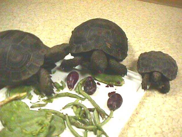 Diet is very widely varied, consisting of minimal grasses but lots of clover, plantain, dandelions and other broadleaf weeds. Vegetables, including greens, cactus, cauliflower, yams and squashes are preferred, but fruits and worms are also readily consumed. Protein intake is higher than most grazing herbivores such as Sulcata and Leopards, but this is to be expected given the availability of invertebrates and carrion in their natural environment.