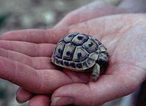 In fine weather during summer, these tortoises should be housed out-of-doors in a secure area with plenty of natural grazing. Hibernation No! This species DOES NOT hibernate. They are very thin little tortoises and do not carry adequate reserves of fat to see them through a hibernation. In the wild, they live in a coastal zone which is very hot in summer and warm in winter. In summer, they aestivate to escape the heat, and are most active from December to March. All photos by A. C. Highfield, taken in the field in Tunisia.